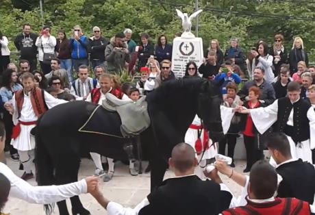 Στη συνέχεια στήθηκε χορός με παραδοσιακές στολές και φουστανέλες, στην κεντρική πλατεία του χωριού. Εκεί όπου χόρεψε ακόμη κι ένα άλογο. Ο BRIO με τον αναβάτη του Μιχάλη Τζουραμάνη.