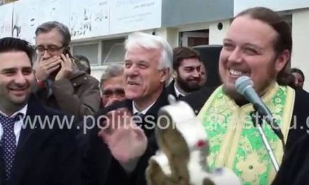 Το στιγμιότυπο ήταν τόσο αστείο που ακόμα και ο… γκαφατζής ιερέας προέτρεψε τους παρευρισκόμενους να το «ανεβάσουν» στο διαδίκτυο.