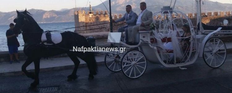 Εντυπωσιακό ήταν το πέρασμα της νύφης με άμαξα η ο οποία ονομάζεται “η άμαξα της σταχτοπούτας” από το λιμάνι της Ναυπάκτου. Ο Γιώργος Δημητρίου γνωστός για την δραστηριότητα του με τα άλογα (Δημητρίου Horses) δεν θα μπορούσε να φυλάξει την καλύτερη έκπληξη του για την αδερφή του Ζωή στην πιο ξεχωριστή ημέρα για εκείνη.