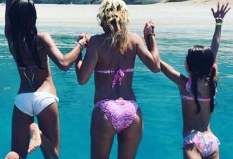 Πριν από λίγο, ανέβασε στον προσωπικό της λογαριασμό στο Instagram ένα βίντεο με την ίδια να κάνει βουτιά στα τιρκουάζ νερά μαζί με τις κόρες της.