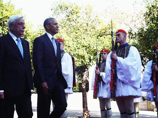 Είναι αυτή με τον Εύζωνα την ώρα που περνά από μπροστά του ο Μπαράκ Ομπάμα συνοδευόμενος από τον Πρόεδρο της Δημοκρατίας Προκόπη Παυλόπουλο.