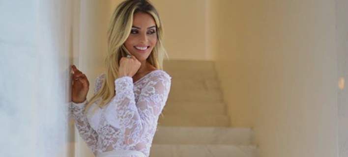 Η ίδια προτίμησε να ντυθεί στα λευκά φορώντας ένα σέξι δαντελωτό κορμάκι το οποίο «έκρυψε» με μία μάξι φούστα με βαθύ σκίσιμο.