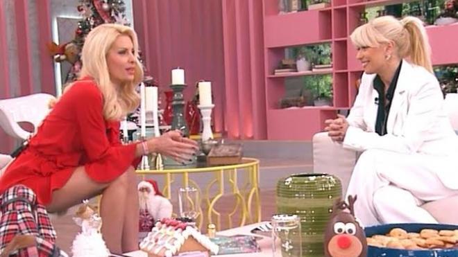 Τη Μαρία Μπακοδήμου είχε χθες καλεσμένη η Ελένη Μενεγάκη. Η παρουσιάστρια Μαρία σχεδιάζει και ρούχα εδώ και λίγα χρόνια και η οικοδέσποινα Ελένη φορούσε χθες ένα κατακόκκινο φόρεμα μίνι με πολλά βολάν.