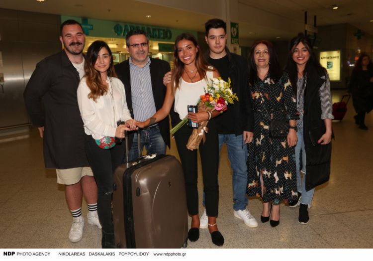 Στο «Ελευθέριος Βενιζέλος» την υποδέχτηκε η οικογένειά της! Η μητέρα της, Μαρία Φαρμάκη, η αδερφή της Γωγώ και ο αδερφός της, Μανούσος.