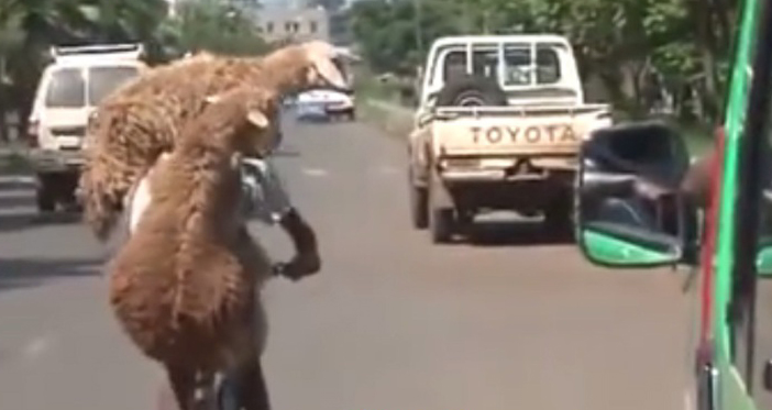 Βοσκός πήρε στην… πλάτη τα πρόβατά του και βγήκε βόλτα στον δρόμο.